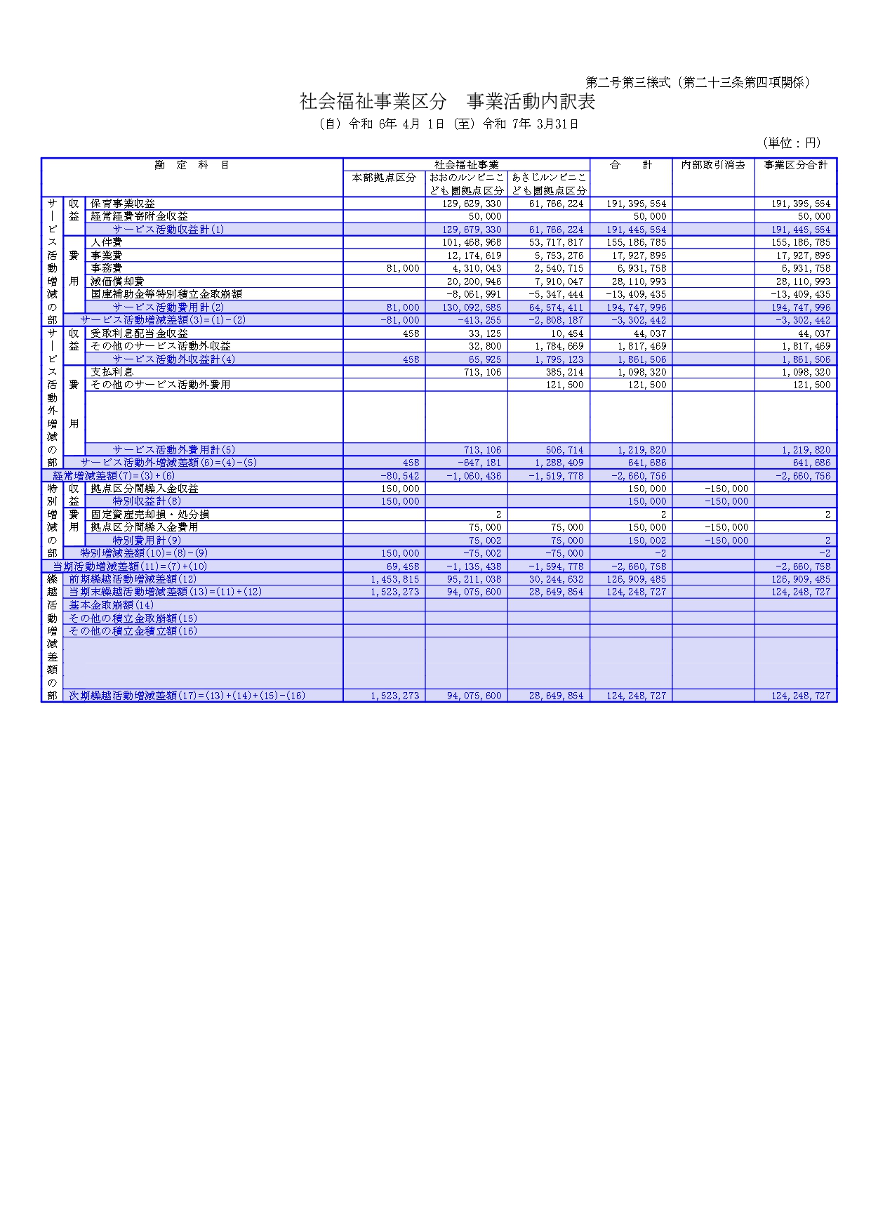 6.事業活動計算書および内訳表